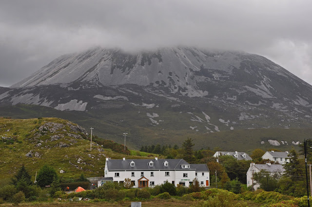 I called the Abby Hotel in Donegal, looking for my economy priced 40 euro crash pad, where I had stayed before. When I arrived, I got a free upgrade, they said because I had been nice on the phone. The next morning, I left to do a 4 hour hike on the Slieve League cliffs, but the early rain made me again turn around. I may never get to hike the edge of these two thousand foot cliffs. I drove north to Letterkenny, spotting a five euro haircut sign on the way. After that ten minute diversion (I don't have much left on top, so it doesn't take long-if it does, then I know the stylist is messing around), I continued my journey.